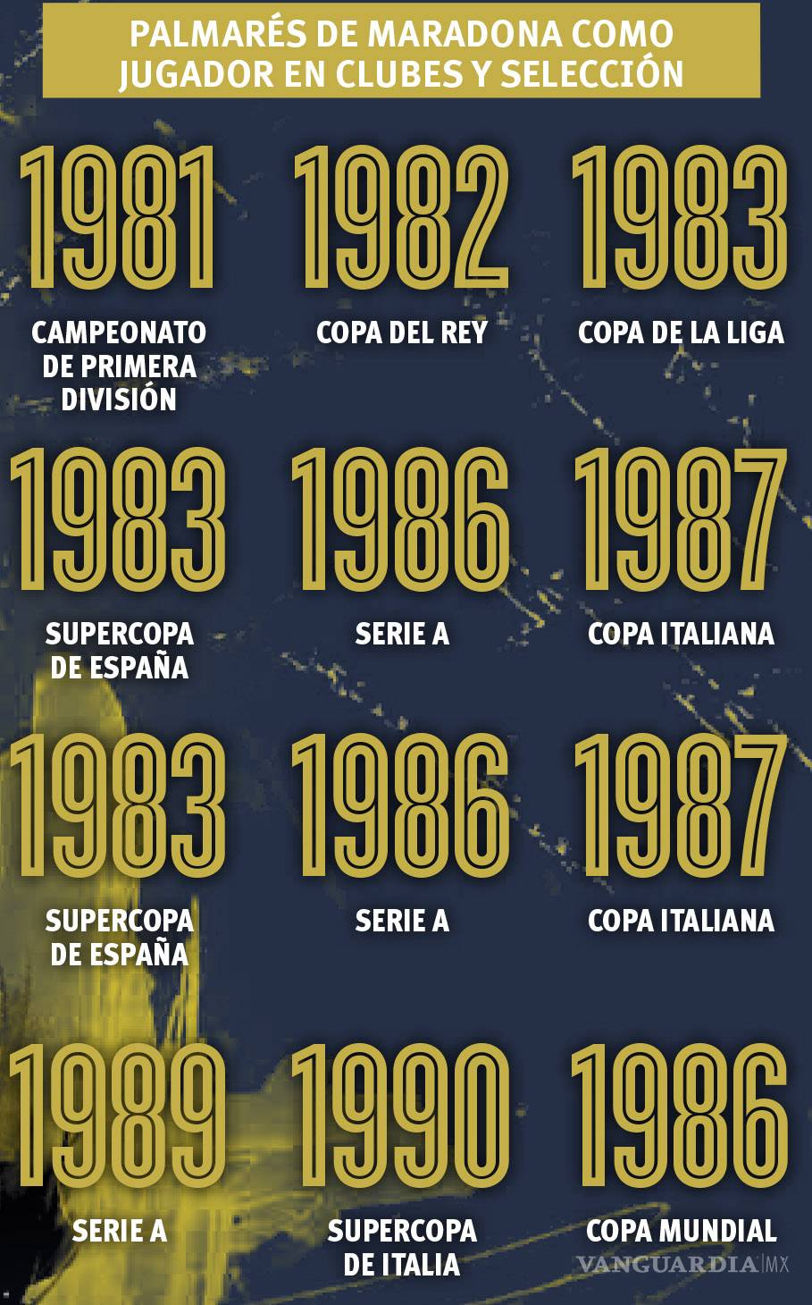Napoli exhibe 9 títulos de primera división y 1 internacional: 2 ligas, 5 Copas, 2 Supercopas y 1 Copa UEFA. La mitad, incluidas las 2 ligas y el torneo de UEFA, las ganaron con Maradona; con 81 goles de liga, 29 en Copa y 5 en competencias UEFA, es el máximo goleador en la historia del Napoli con 115 tantos.