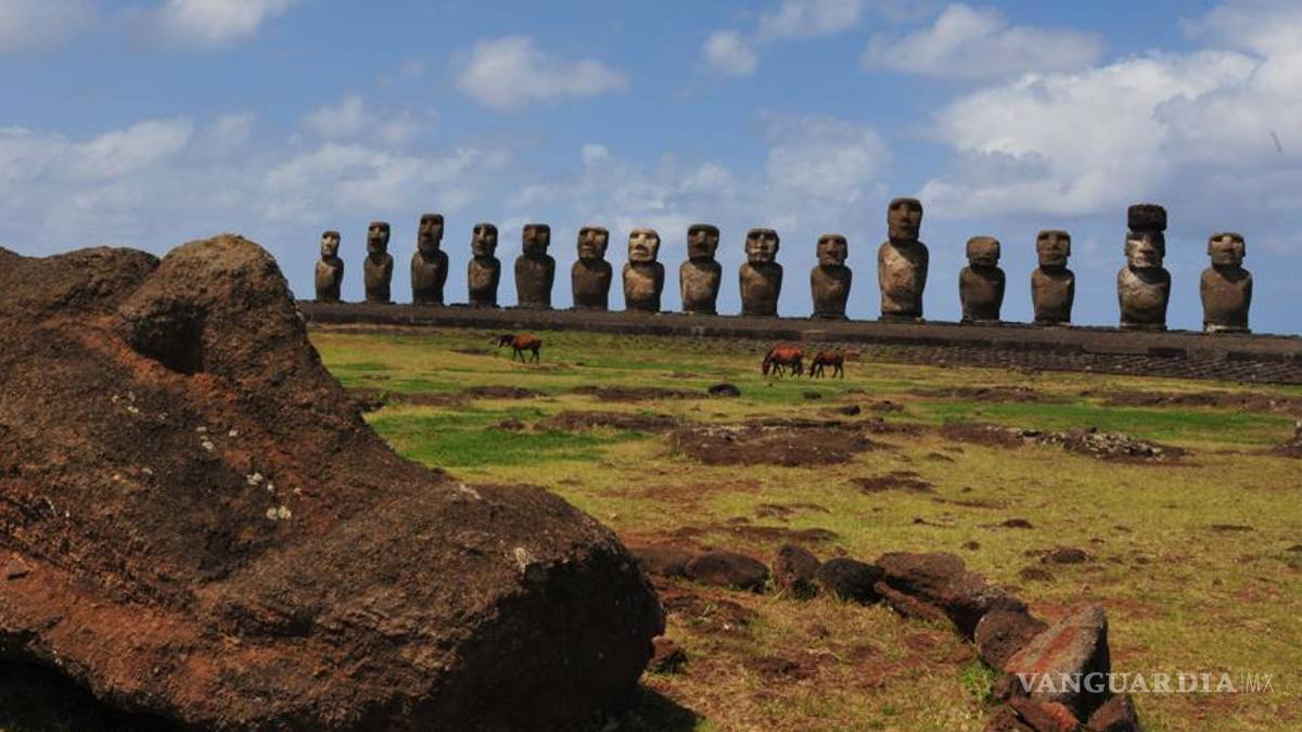 Y es que si hay una imagen que define a esta isla, que surgió de la conjunción de tres volcanes, esta es la de los moai, esas enormes estatuas de piedra de forma humana cuya contemplación de cerca ya justifica, a parte de otros atractivos, el viaje a Rapa Nui y que sorprendieron a Roggenberg, quien desde su nave, antes de atracar, los confundió con personas, por lo que creyó que se trataba de una tierra de gigantes.