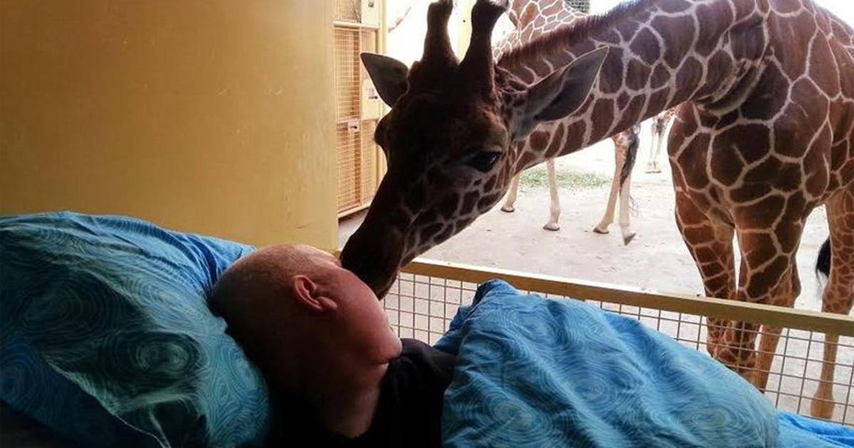 Jirafa da beso de despedida a su cuidador, enfermo con cáncer terminal