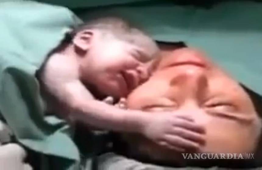Recién nacido se aferra a su madre (Video)