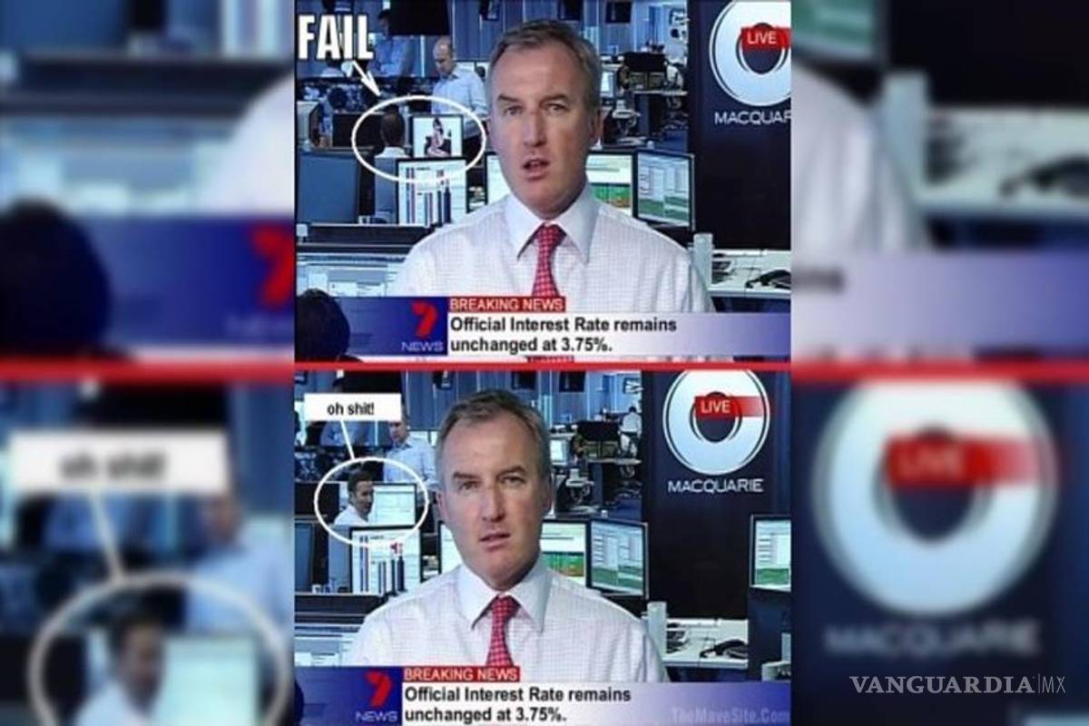 Australia.- El Canal 7 de Australia transmitía un informe sobre la situación económica y los negocios, mientras la conductora realiza un enlace en vivo, detrás del informante hay todo un equipo de analistas haciendo su trabajo... o no.