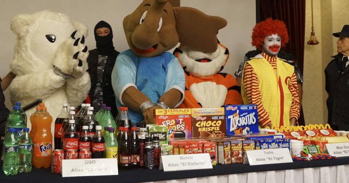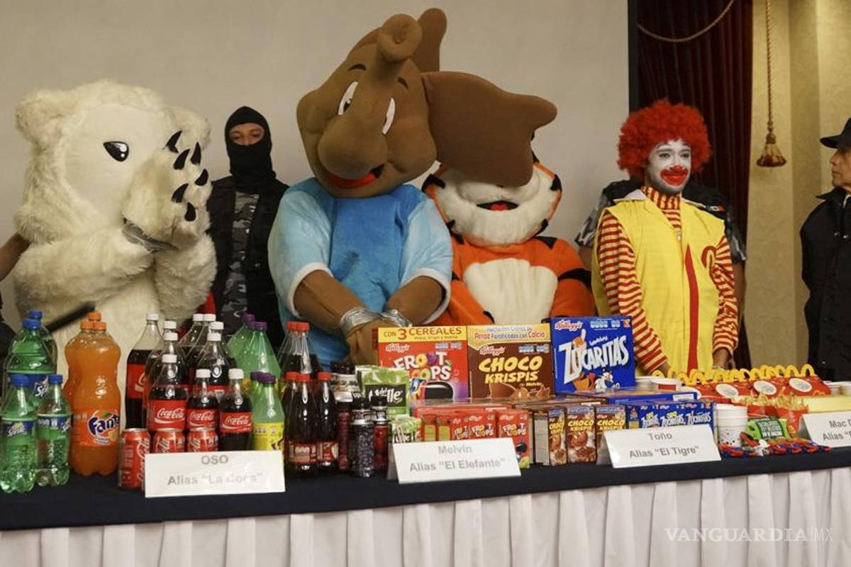 México.- Alianza por la Salud Alimentaria ironizó sobre la presentación de supuestos delincuentes para manifestarse por que se prohíba la publicidad de comida chatarra dirigida a los niños y que es presentada con personajes como los supuestamente detenidos.