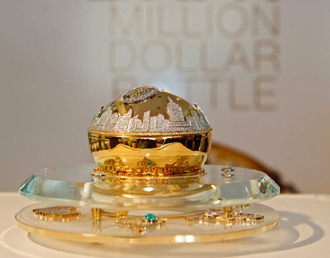 La exclusiva fragancia está embotellada en un frasco del diseñador de joyas Martin Katz, quien utilizó oro, zafiros y 2 mil 700 diamantes.