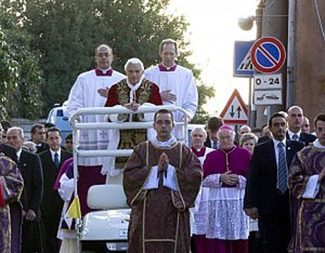 Desde la iglesia de San Anselmo situada en una de las siete colinas de Roma, el Aventino, el pontífice recorrió en un minipapa móvil de tracción eléctrica la procesión de penitencia hacia la basílica de Santa Sabina.