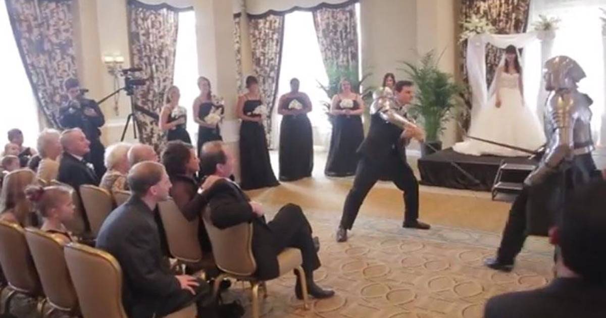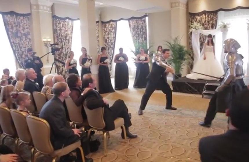 Cuando el sacerdote dijo las tradicionales palabras antes de declarar a una pareja como marido y mujer, comenzó una batalla entre varios guerreros.