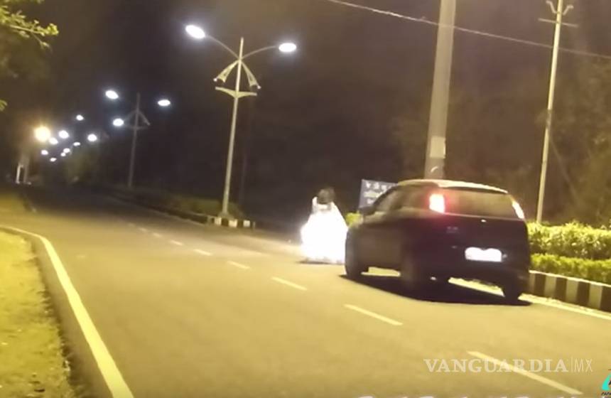 Primero uno de los espíritus se pone frente al vehículo, lo que ocasiona que el conductor se echara en reversa, pero, para su sorpresa, otra ánima aparece detrás.