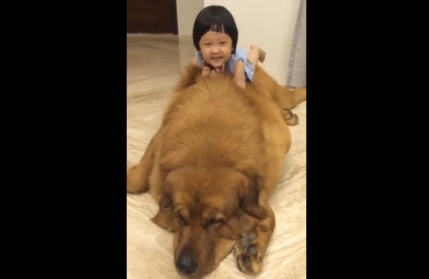Esto es sin duda lo más adorable que vas a ver hoy: el momento en el que Weiwei, una niña de dos años de edad, se sube encima y abraza a Simba, su preciosa mascota.