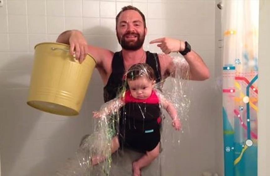 Papá y bebita, en otra forma del #IceBucketChallenge