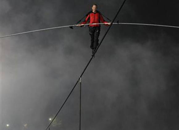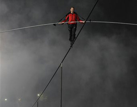 "Es una perspectiva increíble. Menuda bendición. Quita la respiración", dijo Wallenda a su padre por teléfono móvil durante el recorrido, que a su vez le animó: "Bien, Nik". A medio camino, en el lugar más bajo del alambre, se le escuchó rezar.