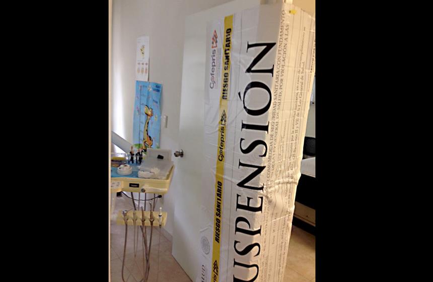 Saltillo, Coahuila.- La Secretaría de Salud a través de la Comisión Federal para la Protección contra Riesgos Sanitarios (COFEPRIS) clausuró de manera preventiva el consultorio médico dental -donde presumiblemente perdió la vida el niño Brian Eduardo Estrada Carrizales, de 3 años, por una presunta sobredosis de anestesia-debido a que se detectaron violaciones a la legislación sanitaria.