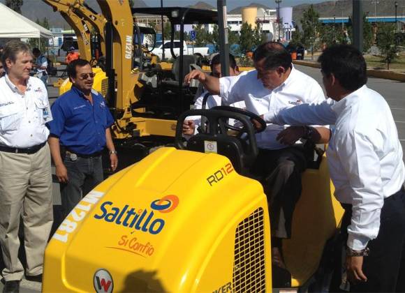 Saltillo, Coahuila. Entregan al Municipio once vehículos para usar en infraestructura urbana por seis millones dos cientos quince mil pesos, con lo que se redoblará la cobertura de arreglo de alumbrado público, pavimentación y bacheo, con dos grúas, dos mini retroexcavadoras, una retroexcavadora, dos compactadoras y cuatro camiones de 3 ½ toneladas.