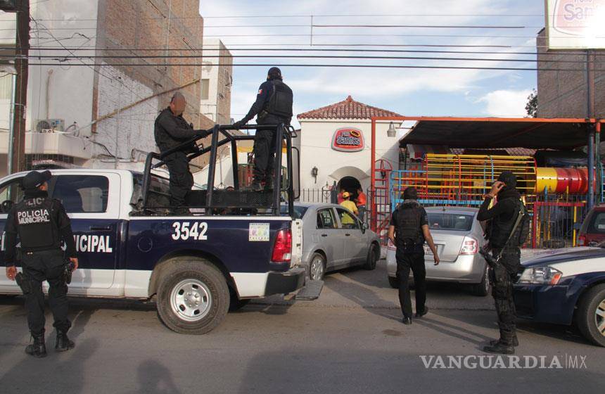Torreón, Coahuila.- Dos sujetos armados con pistola asaltaron a temprana hora de la tarde de este domingo un negocio que se ubica frente a la Alameda Zaragoza donde los paseantes dominicales se mostraron extrañados por la presencia de los policías que llegaron poco después de la fechoría.