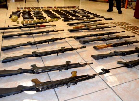 El viernes por la noche se llevó a cabo un operativo en una vivienda de la colonia Nueva Los Angeles, donde se aseguraron 16 armas largas, además de una pistola calibre 45, así como mil 261 cartuchos útiles calibre 7.62x39