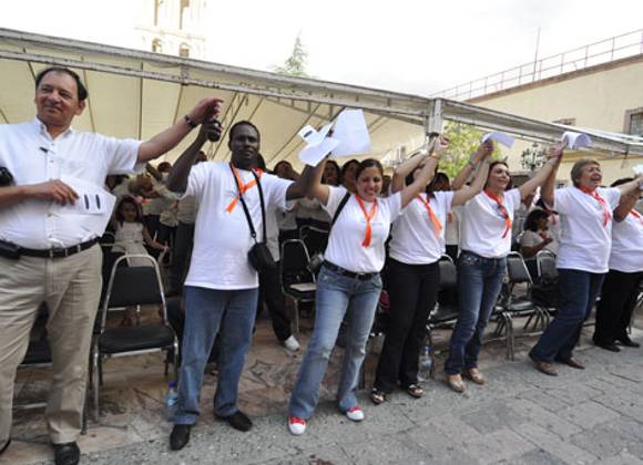 Así, con el lema "la paz comienza en ti", los presentes mostraron su entusiasmo con porras y cantos al principio y final del evento.