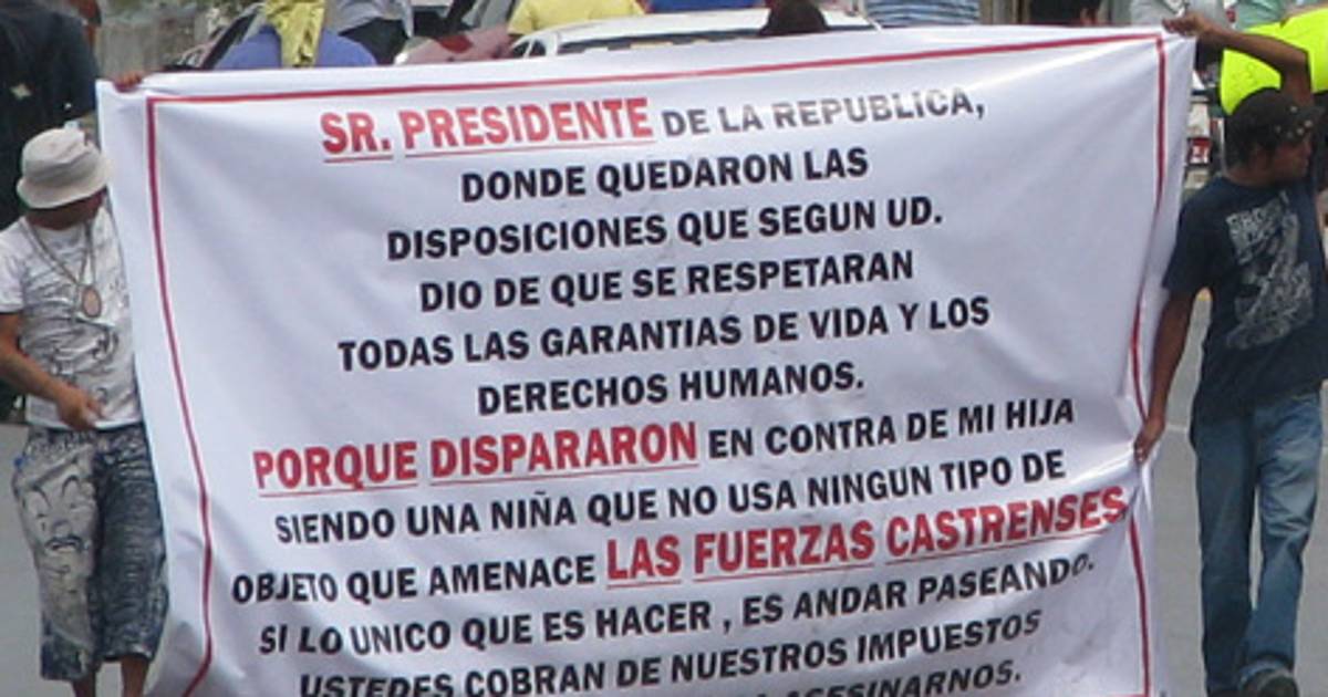 "Señor presidente de la republica donde quedaron las disposiciones que según usted dice que se respetaran todas las garantías de vida y los derechos humanos, por que dispararon en contra de mi hija siendo una niña que no usa ningún tipo de objetos que amenacen la fuerzas castrenses, si lo único que es hacer es andar paseando, ustedes cobran de nuestros impuestos para cuidarnos no para asesinarnos".