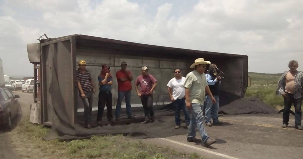 Vuelva tráiler carbonero en carretera Nueva Rosita - Allende