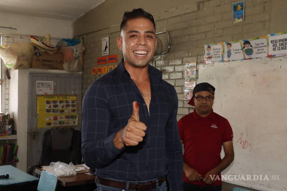 Alegre, bromeando, saludando a sus fans, acompañada de su tía y abuela, Mitchel Márquez, candidato de Movimiento Ciudadano a la alcaldía de Saltillo, depositó su voto en la casilla 1812 ubicada en la colonia Satélite Norte y dijo confiar en la imparcialidad de las autoridades electorales.
