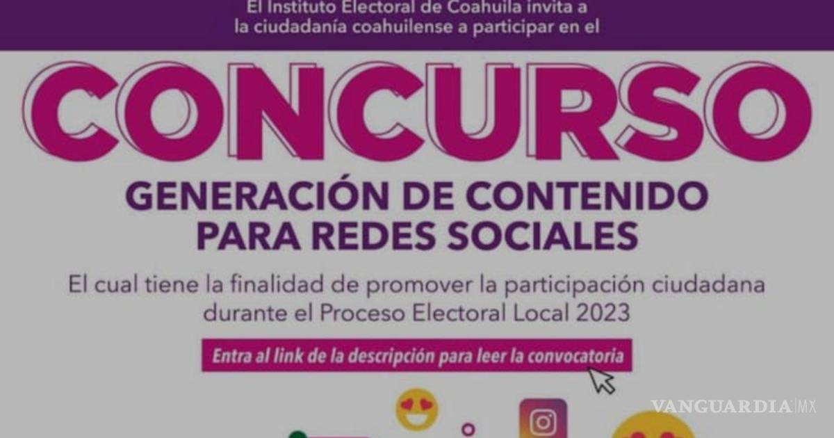 El Instituto Electoral de Coahuila (IEC) emitió la convocatoria para personas que quieran generar contenido en las redes sociales, con el objetivo de promover el voto y la participación ciudadana en el próximo proceso electoral del Estado.