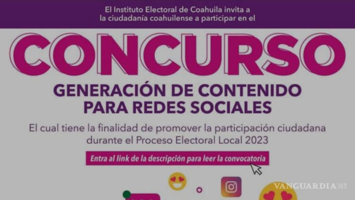 El Instituto Electoral de Coahuila (IEC) emitió la convocatoria para personas que quieran generar contenido en las redes sociales, con el objetivo de promover el voto y la participación ciudadana en el próximo proceso electoral del Estado.