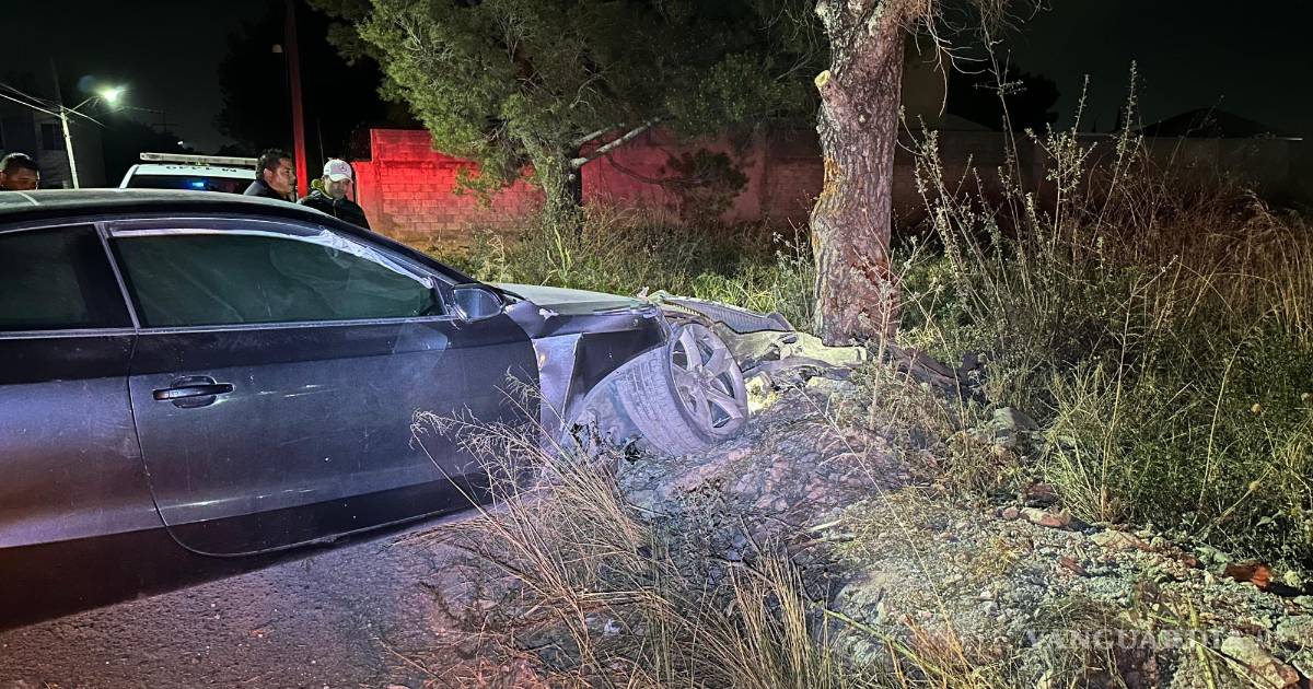 Acelerado choca contra árbol tras pasar vibrador en Lomas de Lourdes, de Saltillo