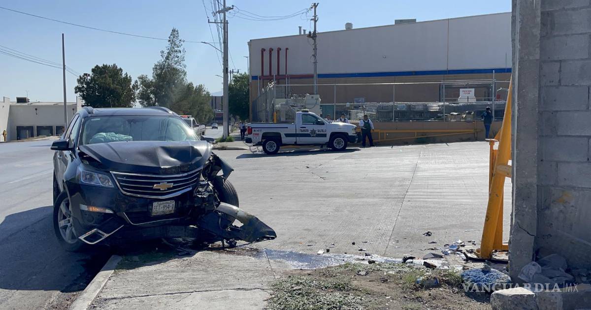 Acelerado conductor choca contra barda de centro comercial, al norte de Saltillo