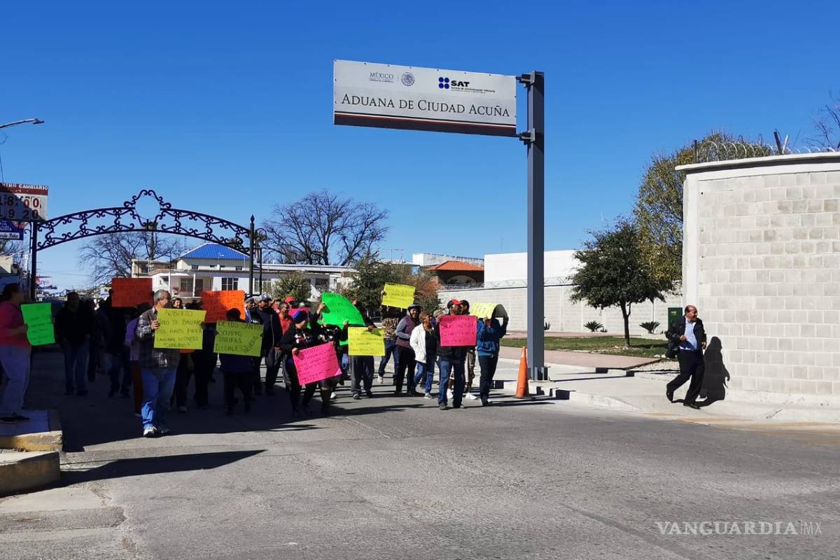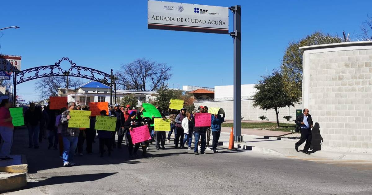 Acuña, Coah.- Un grupo choferes del transporte público que quedaron fuera que de las concesiones por no haber cumplido en tiempo con la documentación ante las autoridades de transporte, se manifestaron en el exterior de los patios de la Aduana Fronteriza de Acuña en demanda de que sean escuchados y se les indemnice.