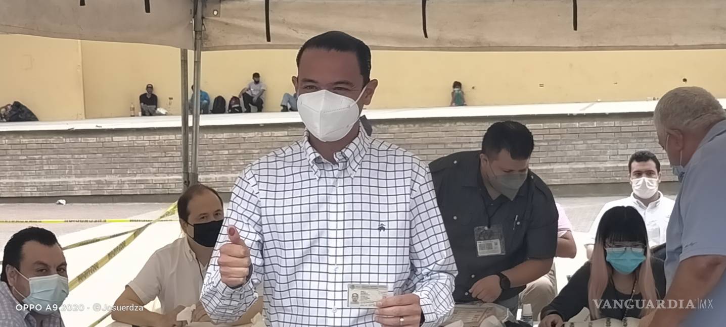 El candidato a la presidencia municipal de Acuña, Emilio de Hoyos Montemayor, hizo un llamado a la ciudadanía a ejercer el sufragio, luego de acudir a votar en la casilla instalada en la plaza Benjamín Canales.