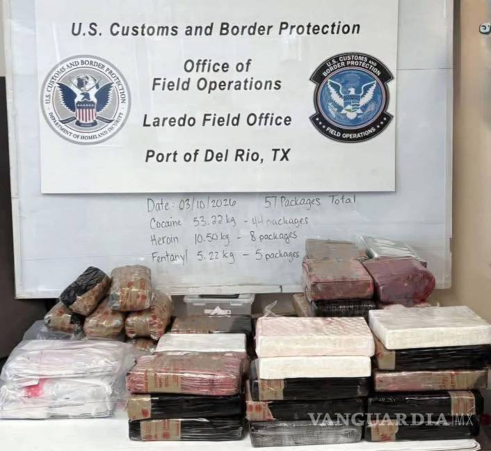 ACUÑA, COAH.- Un cargamento de narcóticos valuado en más de 2.2 millones de dólares fue asegurado por autoridades federales en el puerto de entrada del Puente Internacional que conecta a Ciudad Acuña, Coahuila, con Del Río, Texas, durante la inspección de un vehículo que pretendía cruzar hacia territorio estadounidense.