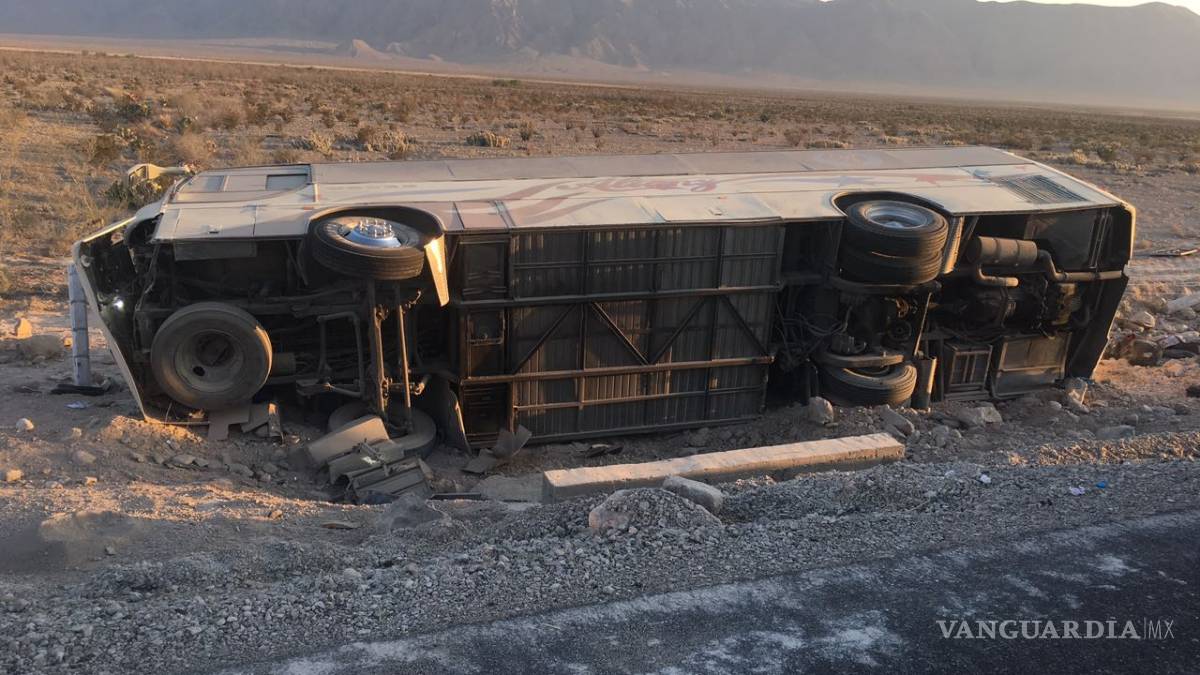Un camión de pasajeros volcó en la carretera 30 de Cuatrociénegas a San Pedro a la altura del kilómetro 145, en el lugar perdieron la vida siete personas entre ellos cuatro menores de edad.