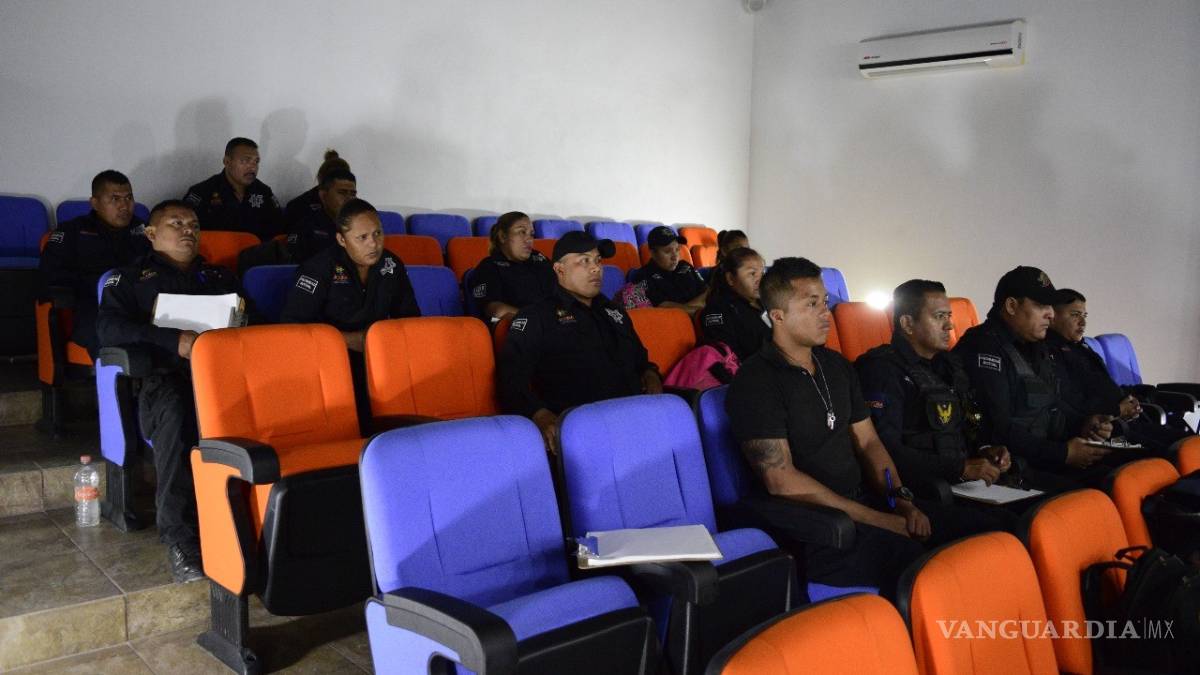 Acuña, Coah.- Porque la capacitación permanente a los policías municipales es prioridad para la Administración Municipal, elementos de esta corporación participaron en taller de dos días, impartido por el profesionista de la Universidad Autónoma de Nuevo León, Francisco Rafael González Quintanilla.