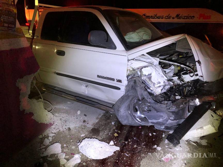 Adulto mayor colisiona contra parabuses en carretera Zacatecas-Saltillo; acompañante resulta lesionada