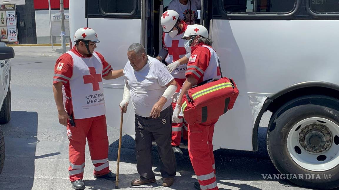 Con una lesión cortante en la muñeca derecha y lesiones abrasivas en su brazo, así terminó Juan Rodríguez Aguilar, de 86 años, después de haber caído dentro de una ruta urbana mientras esta avanzaba por las calles de la colonia Mirasierra, al oriente de Saltillo, la tarde de este miércoles.