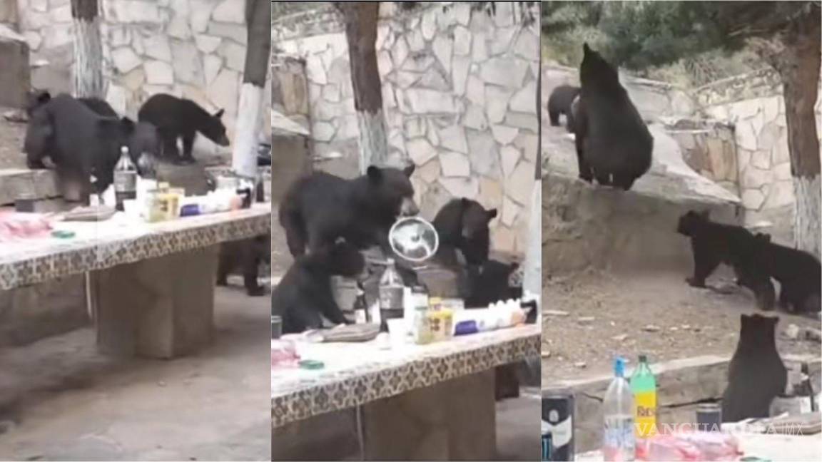 ‘Agarraron la olla, se la llevaron’: en Arteaga, familia de osos llega a carnita asada... y se roban las salchichas