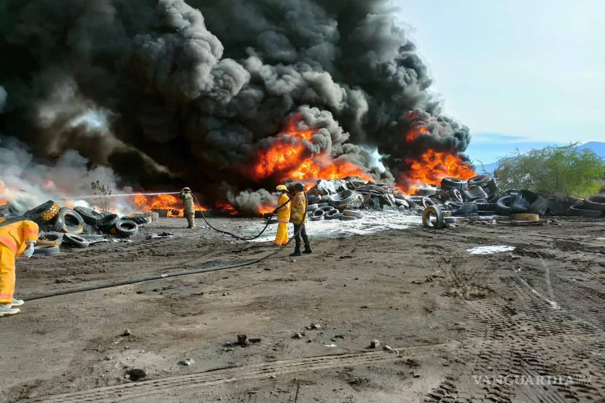 VANGUARDIA dio a conocer que el pasado sábado delincuentes que fueron sorprendidos por el personal de vigilancia en áreas de confinamiento de residuos de la Planta Uno de Altos Hornos de México, en su huida provocaron un incendio en un depósito temporal de neumáticos en desuso.