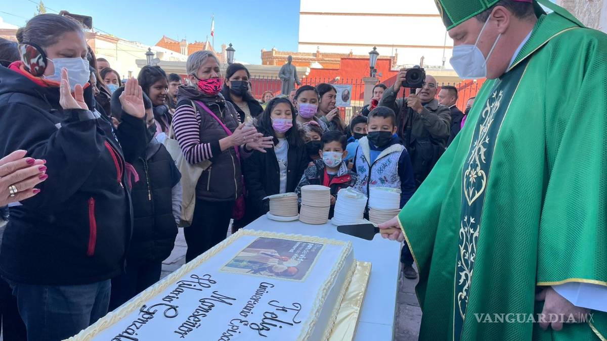 Con mariachi, porras y aplausos, monseñor Hilario González celebró en la misa dominical su octavo aniversario como obispo, de los cuales está próximo a cumplir dos en Saltillo.