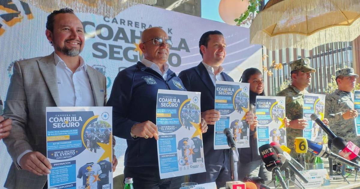 Autoridades civiles y militares, y atletas invitados, encabezados por el fiscal general de Coahuila, Federico Fernández, y el secretario estatal de Seguridad Pública, Hugo Gutiérrez, anunciaron la realización de la primera Carrera 5-k “Coahuila Seguro”.