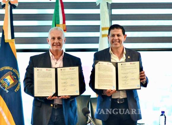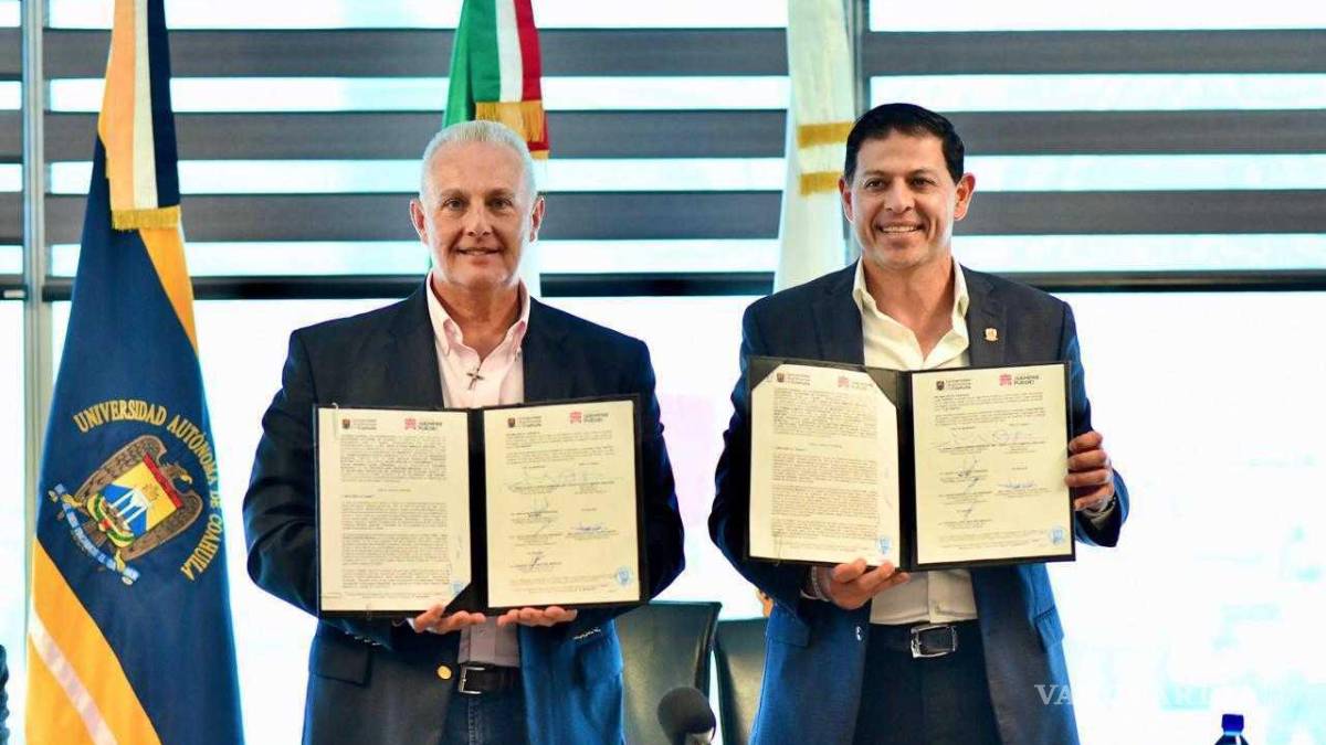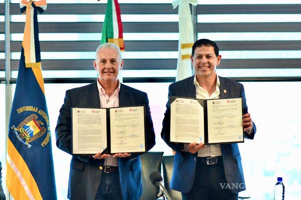 TORREÓN, COAH.- El alcalde Román Cepeda y el rector de la Universidad Autónoma de Coahuila (UAdeC), Jesús Octavio Pimentel Martínez, firmaron un convenio de colaboración en materia de transporte público y movilidad, seguridad, atención a la salud mental, entre otros, en beneficio de la comunidad estudiantil.