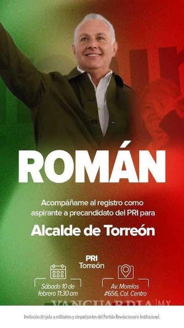 TORREÓN, COAH.- El actual alcalde de Torreón, Román Alberto Cepeda González, concretará el registro como aspirante a precandidato del PRI para contender nuevamente al gobierno municipal de esta ciudad lagunera.