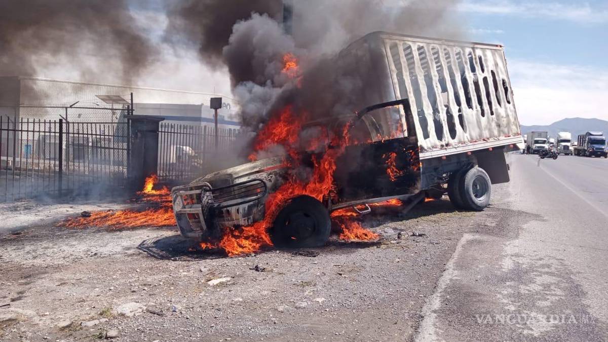Un transporte de carga quedó reducido a cenizas tras un incendio que consumió por completo la tarde de este lunes en el kilómetro 3+500 del libramiento Óscar Flores Tapia, en los carriles con dirección de Arteaga a Ramos Arizpe.