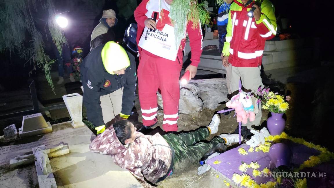 Asusta mujer ebria a familias en panteón de Parras; gritaba en una lápida por un difunto, aseguran
