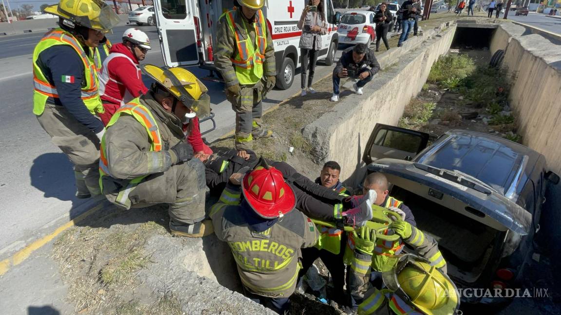 Ataque de tos los manda al arroyo pluvial en Saltillo; pareja sufre accidente y termina en hospital