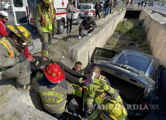 Aproximadamente a las 12:55 de la tarde, un automóvil Chevrolet HHR se precipitó al interior de un canal de drenaje pluvial en Saltillo.