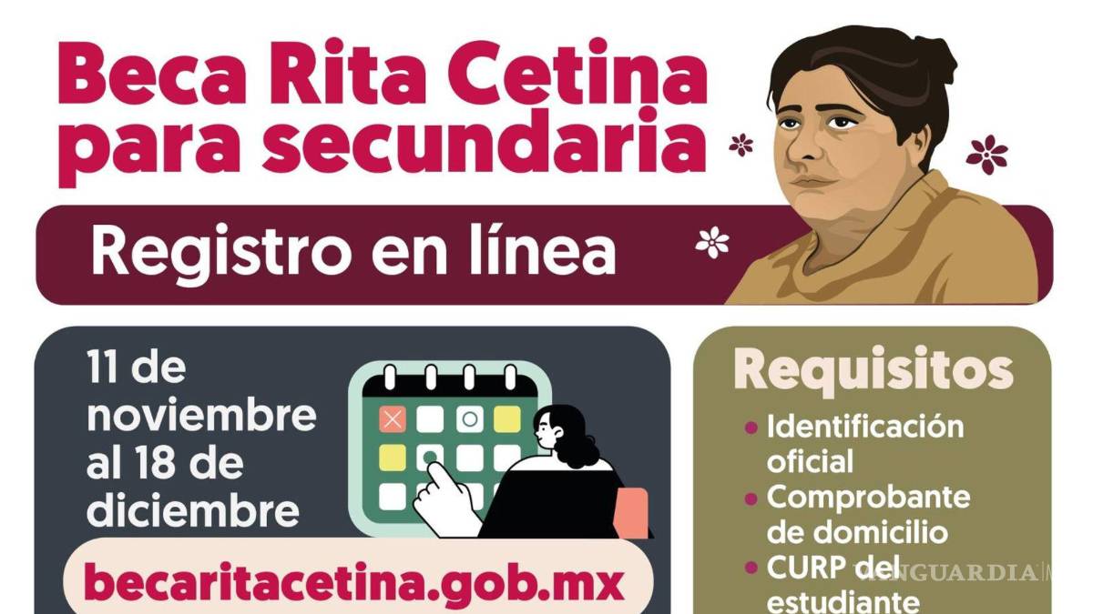 ¡Atención Coahuila! Abren registro para solicitar la Beca Rita Cetina; beneficiará a estudiantes de secundaria