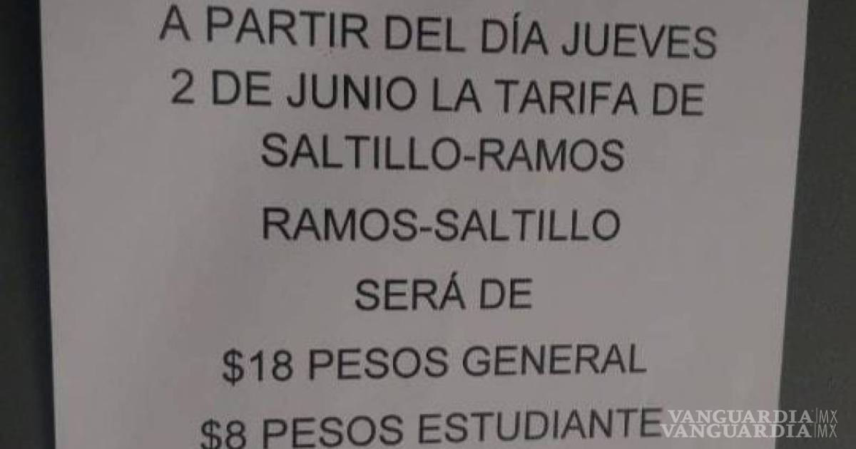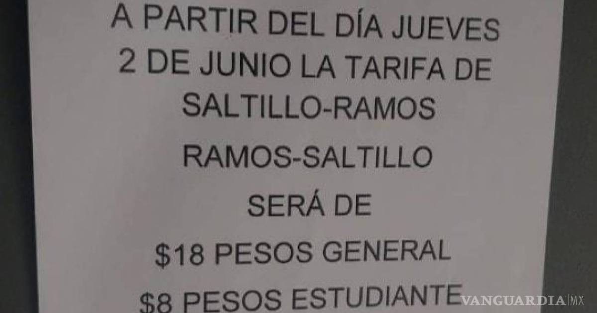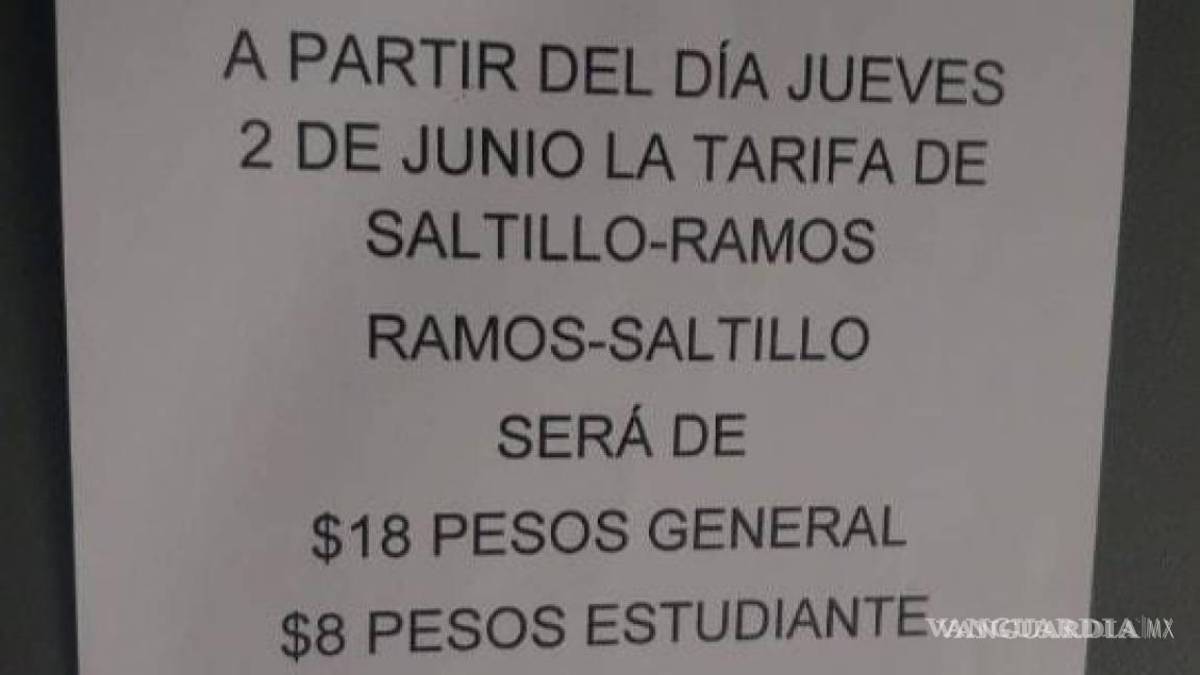 RELACIONADO: Anuncian aumento en tarifa de la Ruta Ramos-Saltillo a $18, a partir del 2 de junio