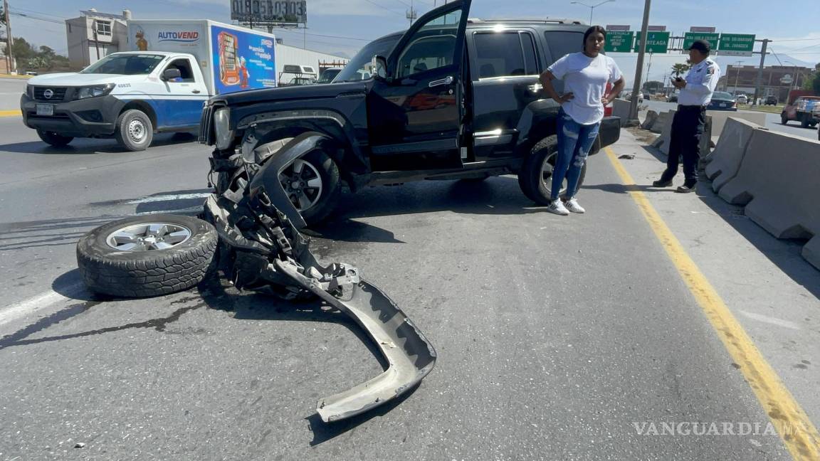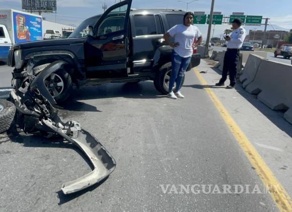 Auto impacta a camioneta y la proyecta contra muro de contención; vehículo obstruye carriles de Saltillo