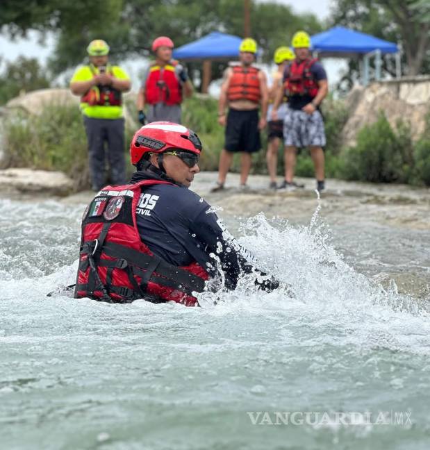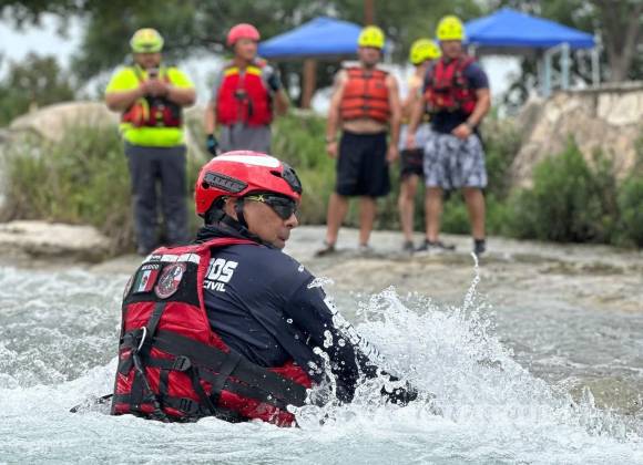 ACUÑA, COAH.- Con el objetivo de mejorar la capacidad de respuesta ante emergencias, el equipo de rescate acuático del Departamento de Bomberos de Acuña llevó a cabo una jornada de entrenamiento en aguas en movimiento, en conjunto con el Departamento de Bomberos de Del Río, Texas.
