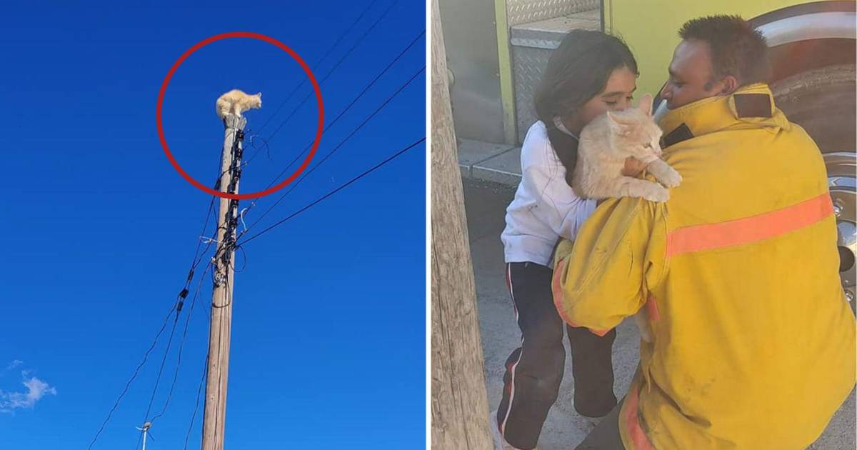 En tanto, el cierre del caso también quedó registrado en emotivas imágenes cuando un bombero entregó el felino a una niña del lugar.