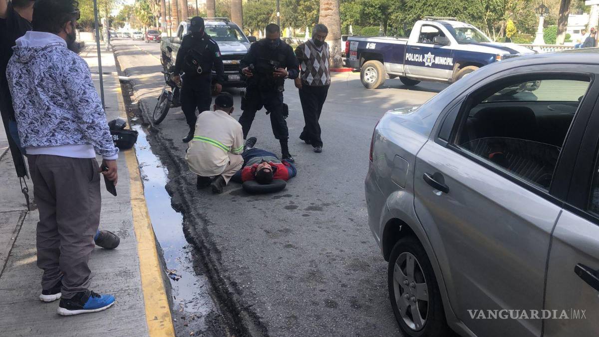 Burla alto y tumba a motociclista frente a la Alameda en Saltillo; ambulancia nunca llegó