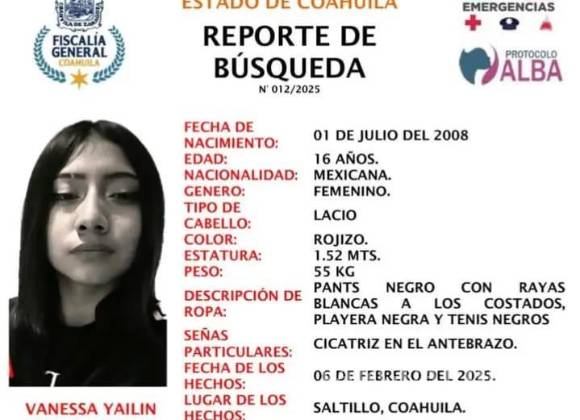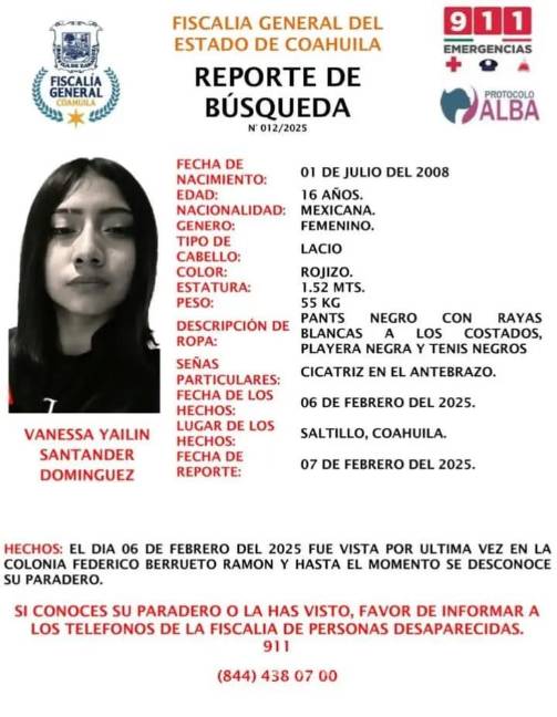 Desde ese día tanto la Fiscalía como autoridades estatales y locales se encuentran en alerta para ubicar a la menor, sin embargo, se extiende la ficha de búsqueda a la ciudadanía para que en caso de tener alguna información se pueda dar con la ubicación de Vanessa y regresarla con sus familiares.