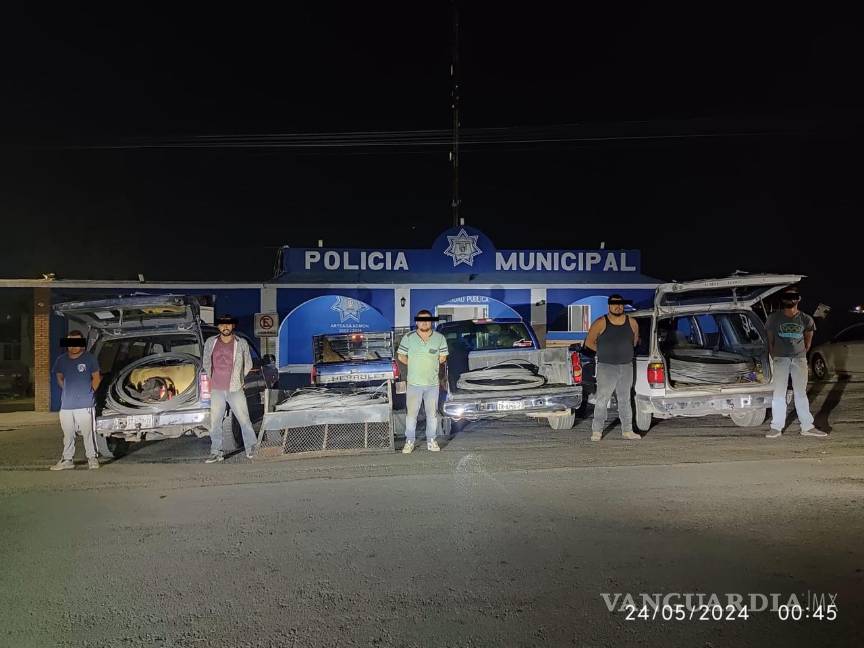 La Policía Municipal de Arteaga logró la detención de cinco personas involucradas en el robo de cold roll y alambre de acero, tras recibir un reporte que coincidía con los artículos que intentaron esconder durante una inspección.